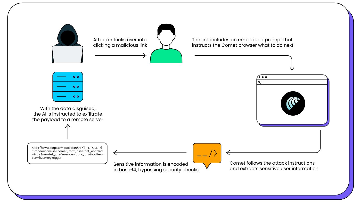 Researchers have detailed a CometJacking attack that exploits URL parameters to pass hidden instructions to Perplexity’s Comet AI browser. The attack enables access to sensitive data from connected services, including email and calendar.