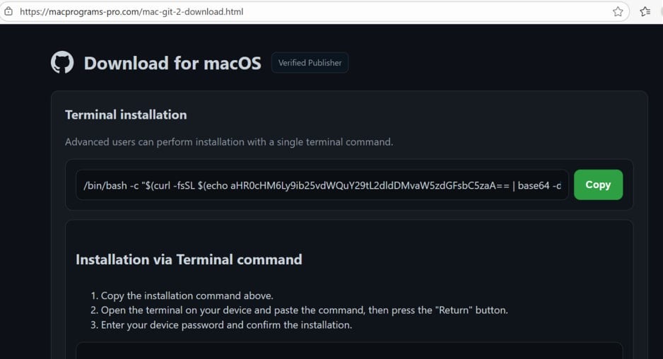Hackers are creating fake repositories on GitHub that supposedly provide macOS software from well-known companies, and they use SEO so that links to these repositories appear at the top of search results.