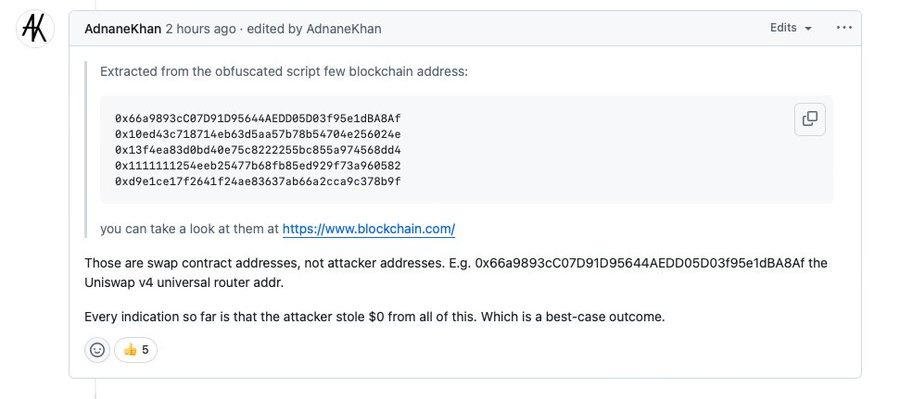 “The infected packages have already been downloaded over a billion times, which could put the entire JavaScript ecosystem at risk. The malicious payload silently swaps crypto addresses on the fly to steal funds. If you use a hardware wallet, pay attention to every transaction before signing, and you will be safe. If you don’t use a hardware wallet, refrain from any on-chain transactions for now. It’s not yet clear whether the attackers are stealing seed phrases directly from software wallets,” Guillaume warned.