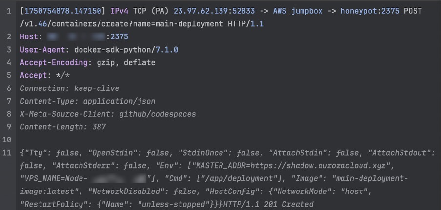 The infection chain begins with a Python script hosted in GitHub CodeSpaces that allows attackers to interact with Docker to create containers. The adversaries target internet-exposed Docker daemons running on AWS instances.