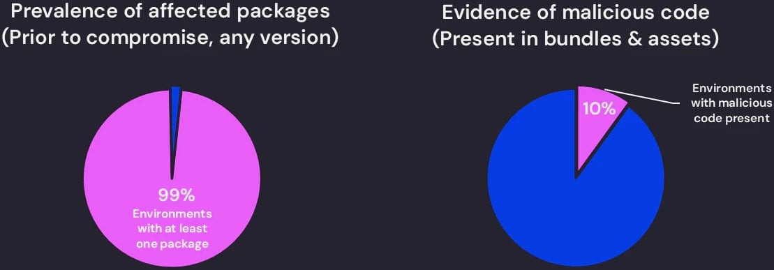 “During the brief two-hour window when the malicious versions were available on npm, the malicious code successfully made its way into one in ten cloud environments. This demonstrates how quickly malicious code can spread in supply-chain attacks like this,” the researchers write.