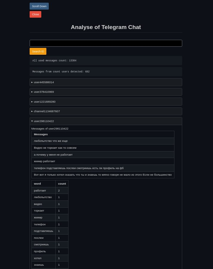 The last feature lets you display messages by user ID. Personally, I haven’t found a use for it yet, since Telegram already has a more convenient search by sender.