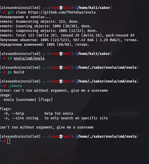 Socid-extractor can pull profile data from many of the services supported by Enola, but does so with a level of detail comparable to YaSeeker. It shows rich details, not just whether the user has an account on a given service.