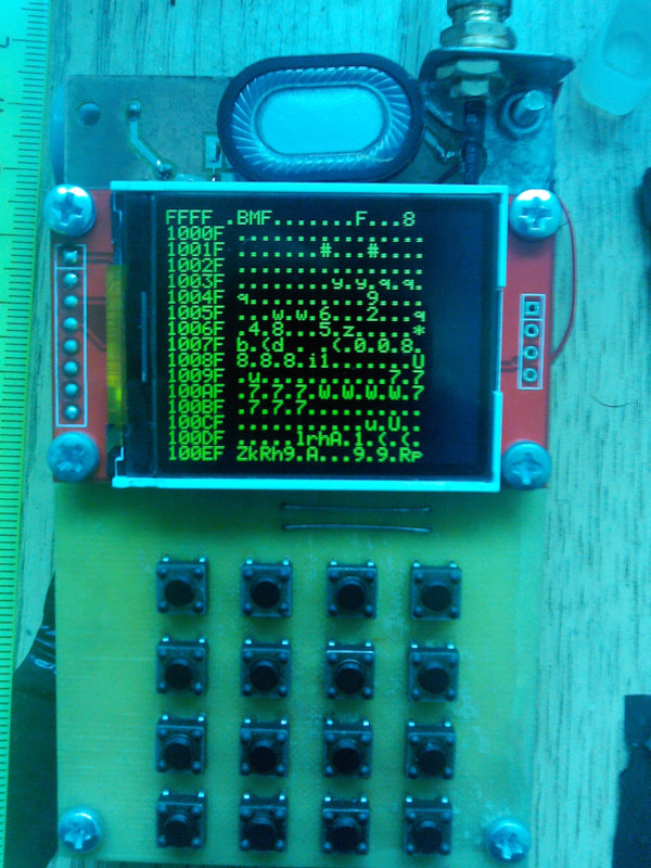 What else can you try when you’ve got a color display and a few megabytes of free memory? Naturally, show some images—that practically suggests itself. The phone easily handles BMP files at 128×160 resolution with 16-bit color. The images are stored in an external flash chip and rendered to the screen using the img_from_flash(
