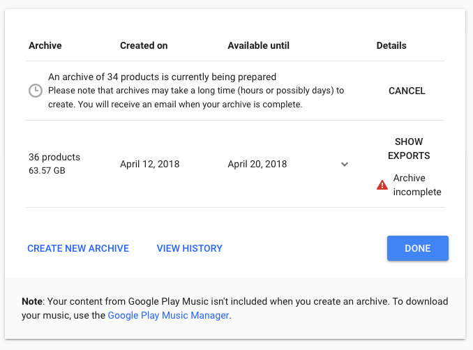 If you don’t want to download that much data, request partial archives that exclude some services. For example, if you disable Photos, YouTube, and Gmail—and Drive as well if you keep anything there beyond test documents—you might end up with only a few hundred megabytes. Also, the smaller the archive, the sooner you’ll get the download link.