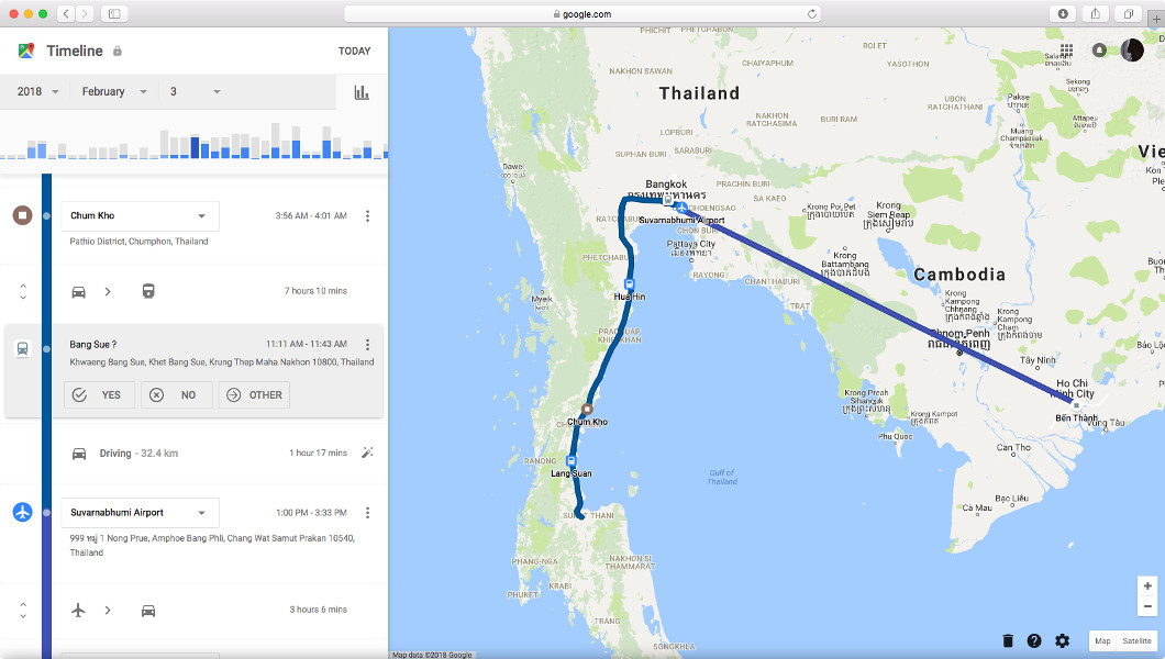 However, Google’s service is still unmatched here. Google Maps includes a Timeline tool where you can browse your collected data by day, and beyond the raw data you get via Takeout, it adds useful analytics. For example, Google infers the names of places and businesses you’ve visited and does an excellent job distinguishing modes of transport—easily telling whether you were on a motorcycle, in a car, or on a bicycle.