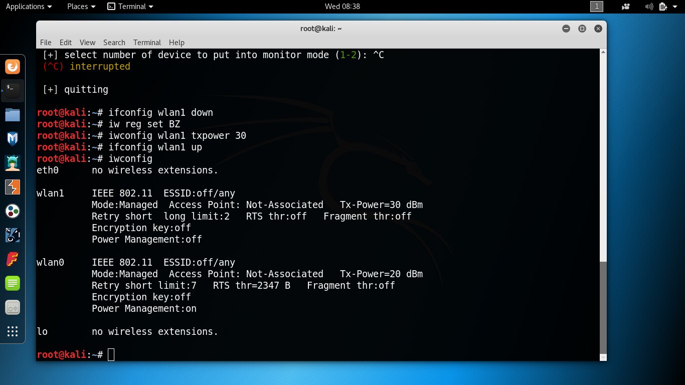 The basic idea behind increasing a transmitter’s power in software is simple, but the details matter. So let’s go through it step by step using Kali 2018.1 as an example.