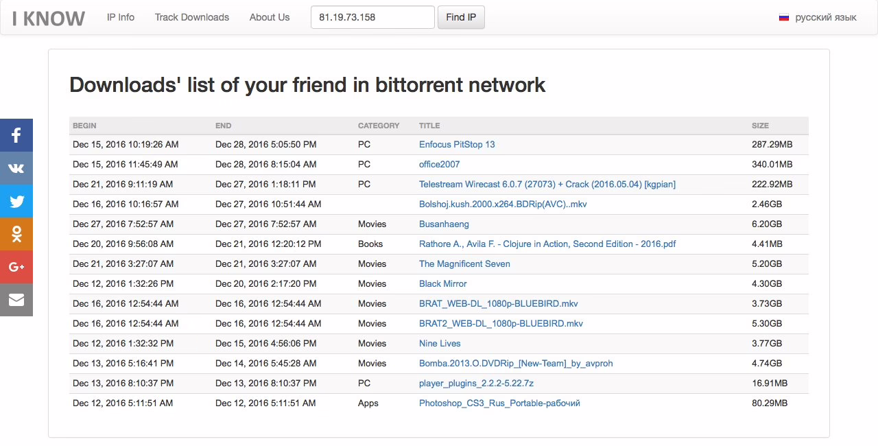 Now send it to someone and wait for them to click. If everything worked, you’ll see their IP address and a list of the torrents they’ve downloaded.