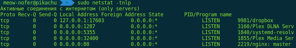 $ sudo netstat -tnlp