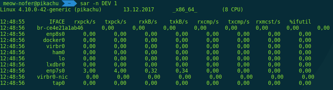 $ sar -n DEV 1