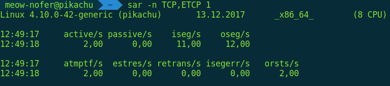 sar also lets you monitor connection opens/closes and retransmissions in real time (i.e., re-sending the same data when network equipment glitches or the link is very unstable—very helpful for troubleshooting).